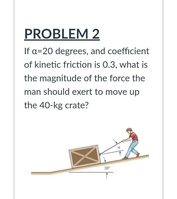 Solved Problem 2 If A 20 Degrees And Coefficient Of Kinetic Chegg Com