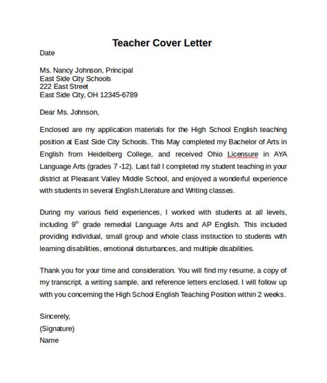 Teacher Application Cover Letter Example
